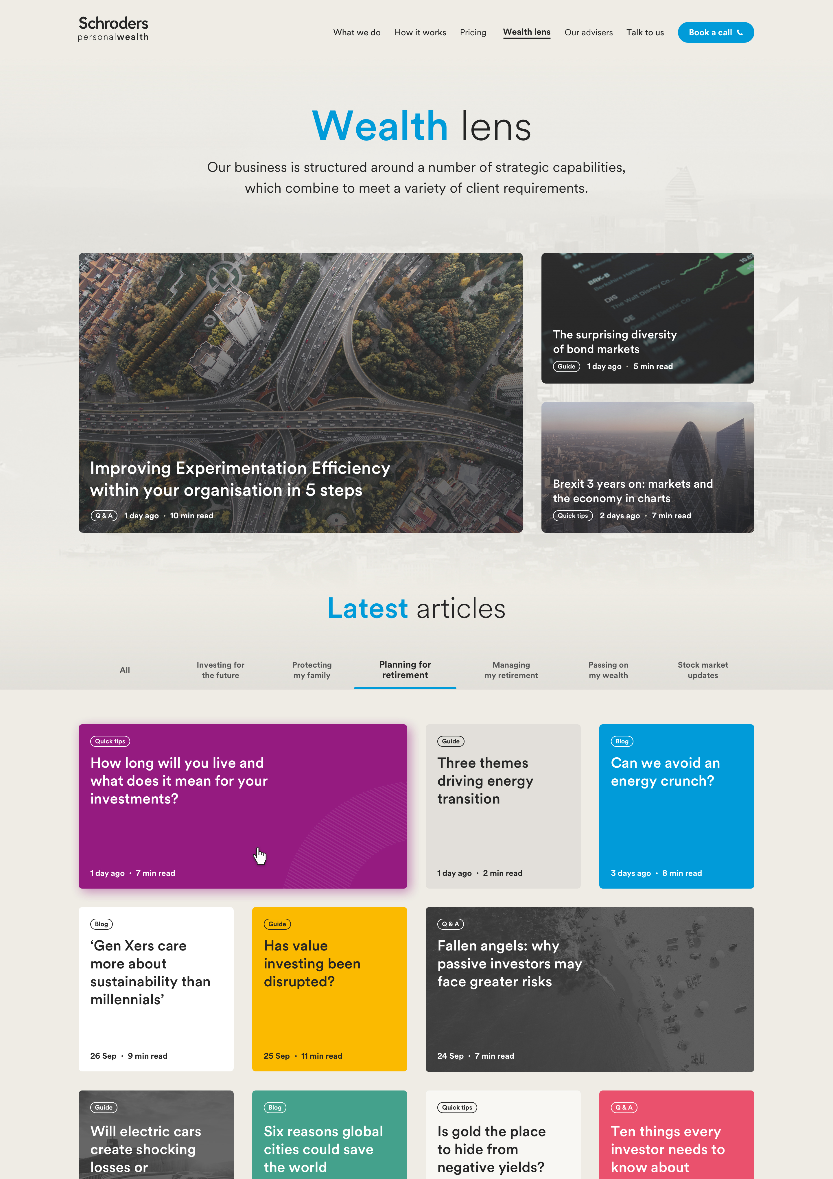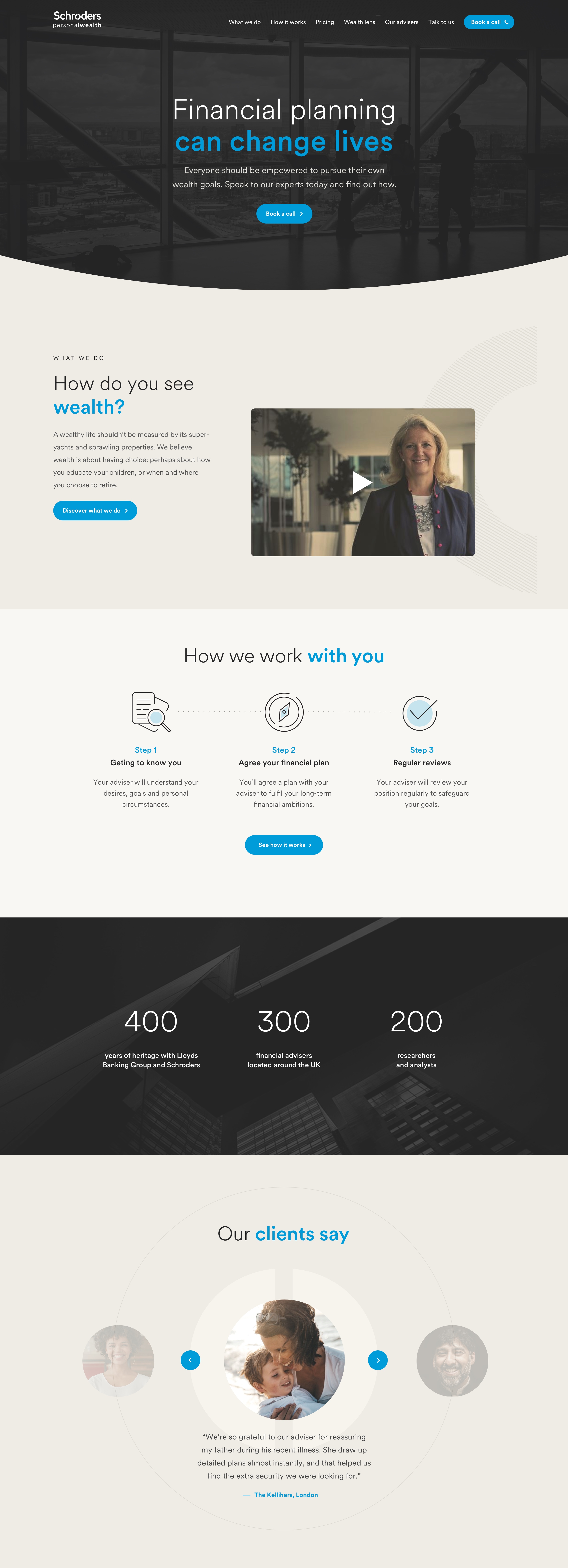Schroders Personal Wealth (SPW) was born out of a joint venture between Schroders and Lloyds, aiming to offer an advice-only personal wealth management service to all types of customers, covering a category gap in the UK market.